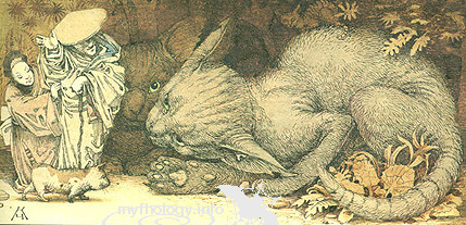 В старину жила на ее склоне королева кошек. Каждый год в ночь накануне праздника Сэцубун** собирались к ней с поздравлением все почтенные кошки из соседних селений. В это время повсюду на этой горе можно было услышать кошачье мяуканье. Иные даже видели торжественное шествие кошек.